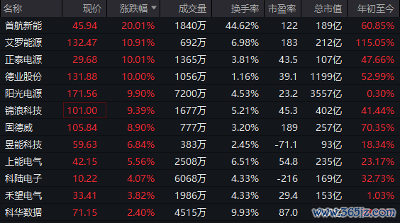 光伏产业链爆发,首航新能实现20%涨停;正泰电源(维权)、德业股份涨停,阳光电源、亿纬锂能(维权)均涨超9%。