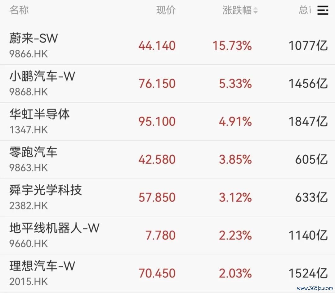 港股方面,恒生指数、恒生科技指数震荡拉升,蔚来大涨15%,小鹏汽车、华虹半导体涨幅居前。